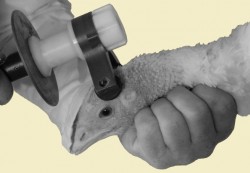 Current flow is reduced by poor contact between the electrodes and the head, which can be made worse by dirt on the electrodes or the bird. Poor current flow can result in an ineffective stun and considerable suffering to the bird. Contact resistance must therefore be kept to a minimum. Using a wire brush, powered wire wheel or cleaning solution after use on 20–25 birds will help to maintain the equipment. Pre-wetting birds’ heads (using a wet sponge) can also improve the electrical contact. Current flow can be particularly poor for ducks, geese and turkeys, so the use of concussion stunning equipment is preferable for these species.